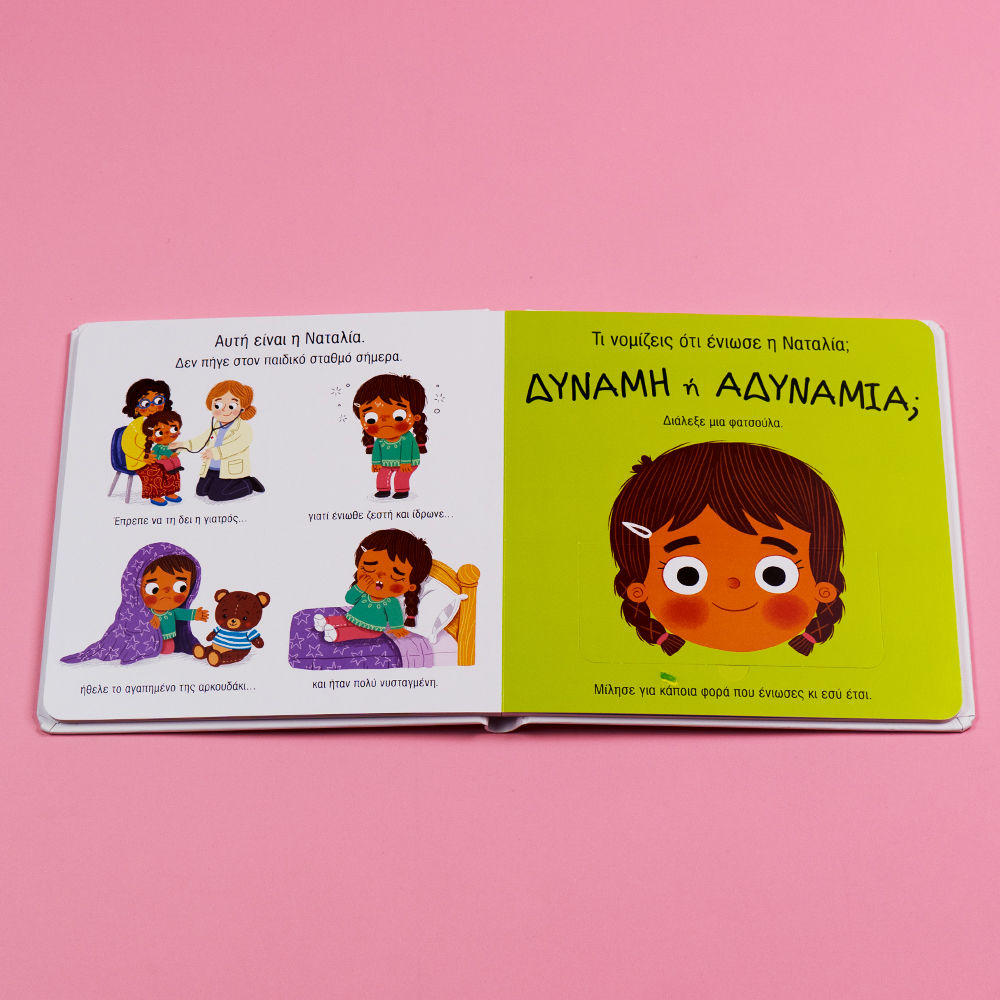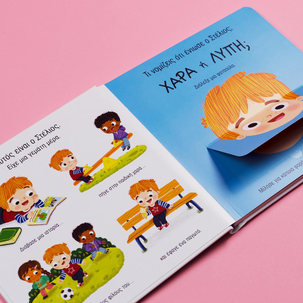 Αυτό το διαδραστικό βιβλίο µε παραθυράκια θα βοηθήσει τα παιδιά να µιλήσουν για όλα τα διαφορετικά συναισθήµατα που βιώνουν µέσω παραδειγµάτων από την καθηµερινότητά τους.
