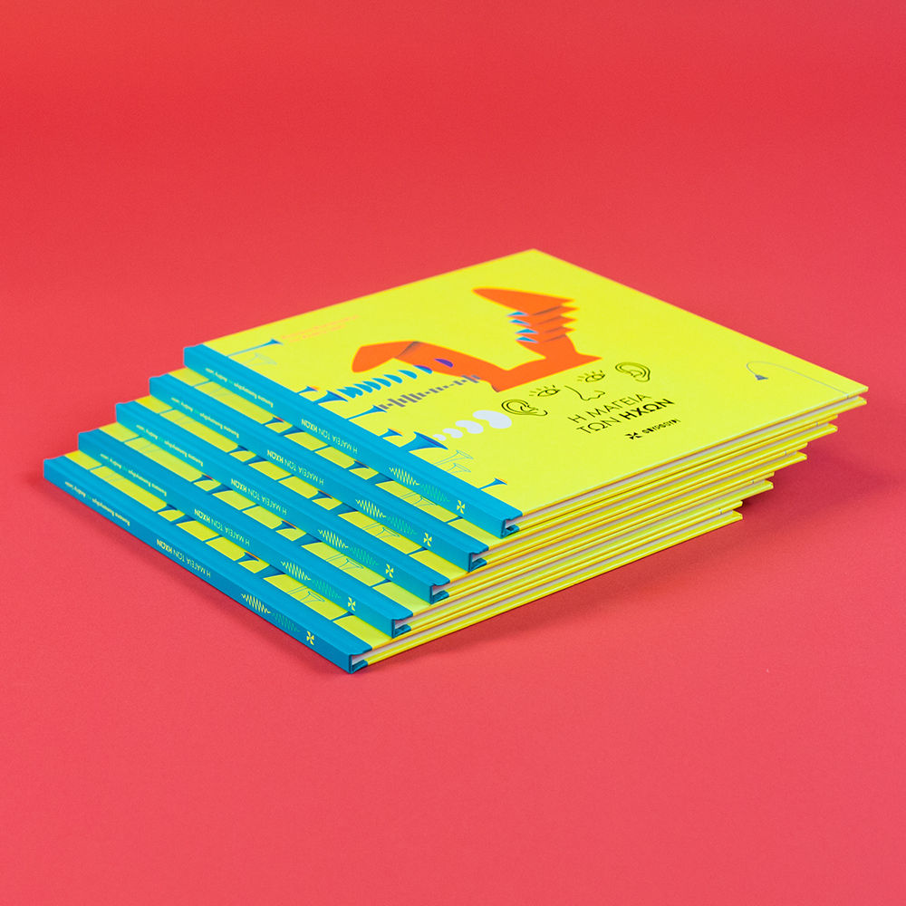 Η λειτουργία πρόσληψης των ήχων από τα όργανα του σώματός μας, η μουσική και η εξέλιξή της μέσα στα χρόνια, το ελληνικό αλφάβητο στη νοηματική γλώσσα, αλλά και η μαγεία της σιωπής, είναι μερικά μόνο από τα θέματα που παρουσιάζονται στα σαλόνια του βιβλίου, το οποίο είναι τυπωμένο με χρώματα της PANTONE.