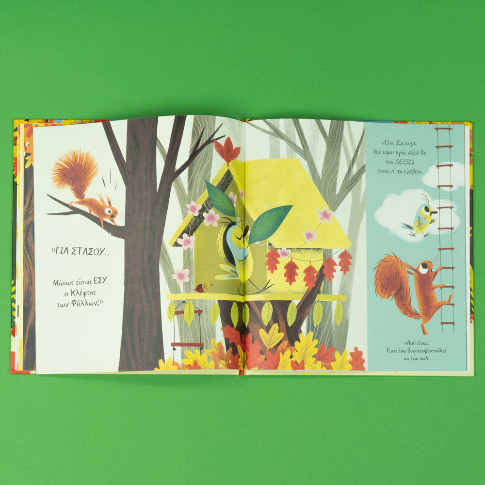 Ο σκίουρος είναι πολύ θυμωμένος! Μέχρι χθες το δέντρο του ήταν γεμάτο πανέμορφα φύλλα. Σήμερα, όμως, κάποια φύλλα έλειπαν… που σημαίνει ότι κάποιος τα κλέβει! Άρα στο δάσος κυκλοφορεί… ένας κλέφτης φύλλων!