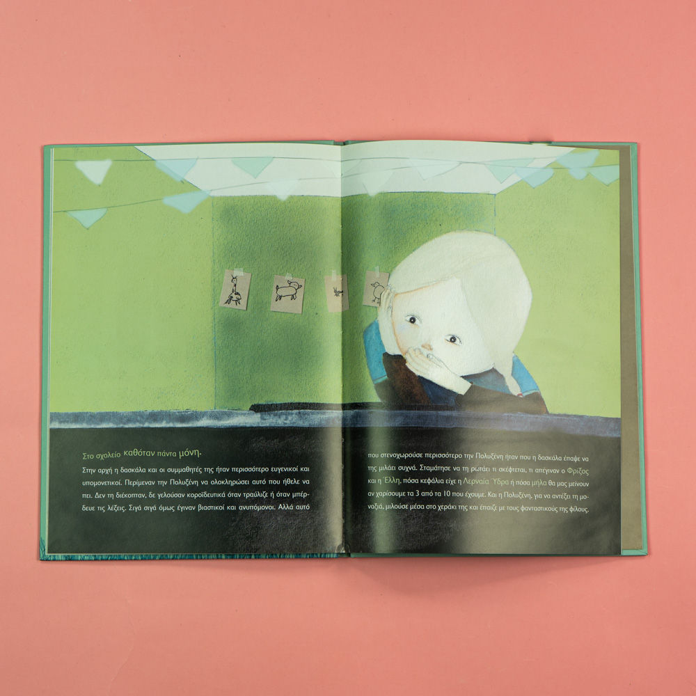 Η Πολυξένη είναι ντροπαλή. Δυσκολεύεται να μιλήσει γρήγορα όπως τα συνομήλικά της παιδιά, όταν όμως τραγουδάει αυτά που θέλει να πει, η γλώσσα της πάει ροδάνι!