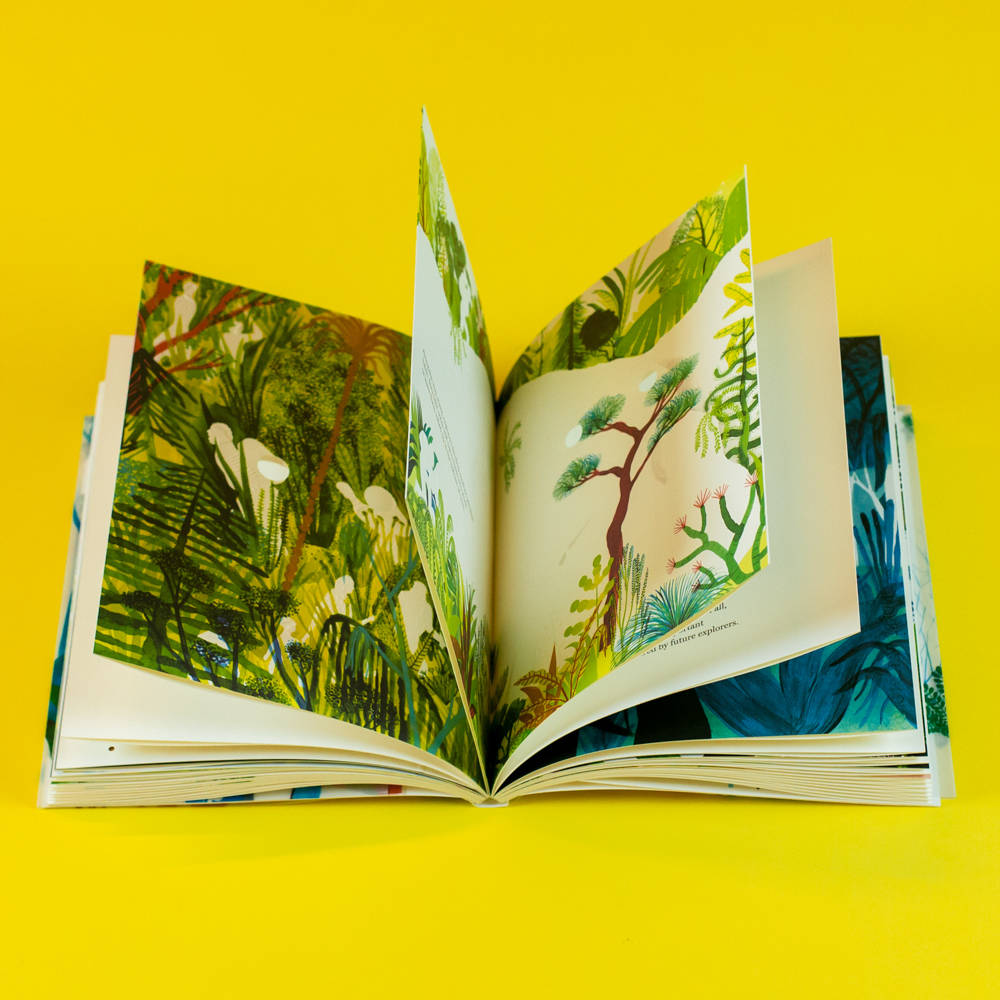 A lyrical book about the adventure of life, The Forest is also a magnificent visual work, both painterly and a technical feat of paper engineering. Here, sensory experience and the textures of the material world are rendered through die-cuts, embossing, cutouts, and two gatefolds. A beautifully considered work.