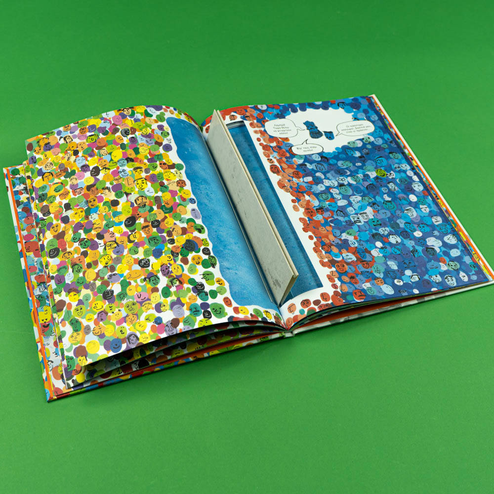 Ένας βασιλιάς που δεν αποδέχεται τη διαφορετικότητα εξορίζει όσους κατοίκους δεν είναι ίδιοι με αυτόν και χτίζει ένα τείχος για να τους κρατήσει μακριά. Τώρα το βασίλειο είναι χωρισμένο στα δύο, όμως τίποτα πια δεν είναι το ίδιο.Το λιτό κείμενο και η έξυπνη εικονογράφηση, μαζί με ένα pop up τείχος που πραγματικά ορθώνεται καθώς εκτυλίσσεται η ιστορία, «μιλούν» στα παιδιά με τον πιο παραστατικό τρόπο για το πώς οι κοινωνίες παρακμάζουν όταν κυριαρχούν οι διακρίσεις και οι διαχωρισμοί, και πώς ευημερούν όταν όλοι οι άνθρωποι ζουν μονοιασμένοι και συνεργάζονται για το κοινό καλό. Με προτάσεις για συζήτηση με τα παιδιά, καθώς και ένα διασκεδαστικό παιχνίδι «ψάξε και βρες» στις σελίδες!